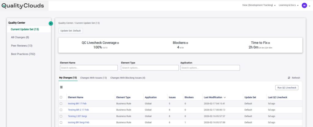 By running Livechecks at the Update Set level, teams gain full visibility into the quality of their development work, reducing the risk of promoting issues into test or production environments.