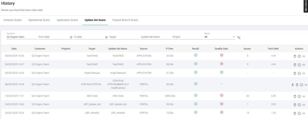 Quality Gates can be applied directly to ServiceNow Instances, ensuring that development quality is validated directly in the platform development workflow.